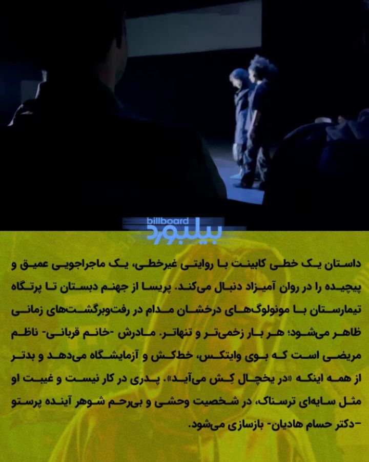 بیلبورد فارسی – یکی از مشتریهای نمایش «کابینت» در اطراف «کاخ هنر» سیگارش را به آتش میکشد و میپرسد: فیت جدید هیپهاپ و تئاتر، نقطه عطف است یا مثل همیشه یک کلیشهی تبلیغاتی برای کاسبی با هنر؟
